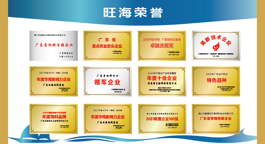 旺海集團旗下順德旺海飼料實業(yè)有限公司榮獲廣東省重點農(nóng)業(yè)龍頭企業(yè)榮譽、廣東順德順爺水產(chǎn)有限公司榮獲佛山市“菜籃子”基地榮譽。