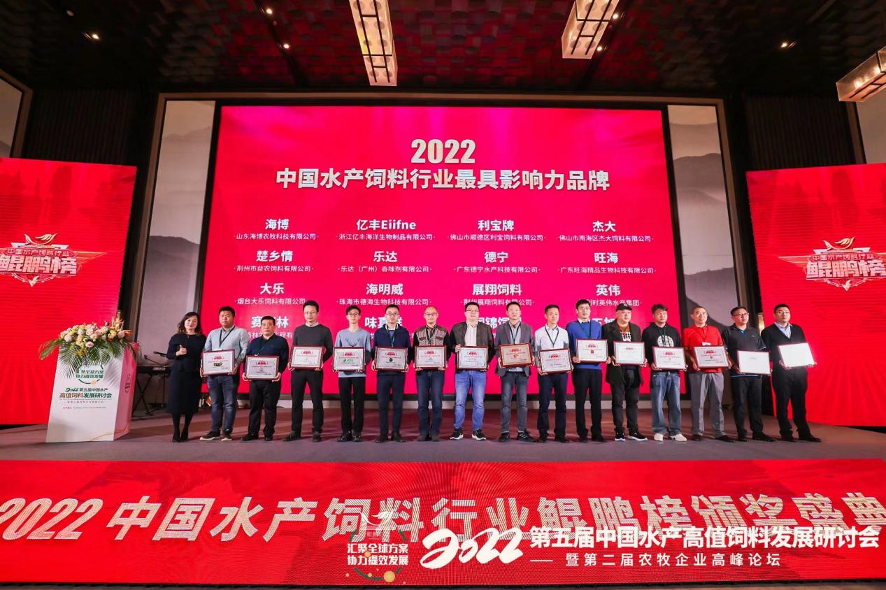 會議同期舉行了“鯤鵬論壇·2022中國水產(chǎn)飼料產(chǎn)業(yè)年度榜”頒獎盛典,旺海集團榮獲“2022中國水產(chǎn)飼料行業(yè)最具影響力品牌”榮譽!