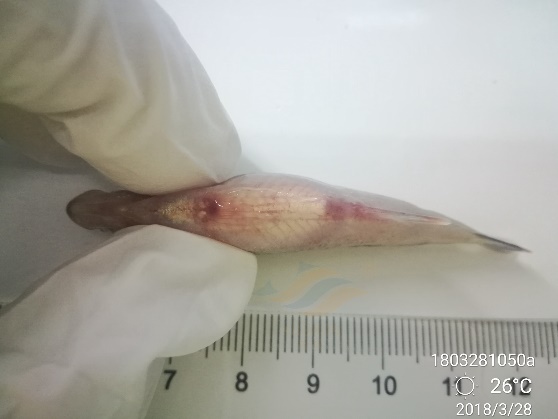 圖3:示腹部紅點 圖4:示鰓蓋潰瘍