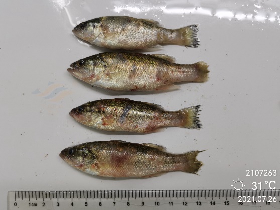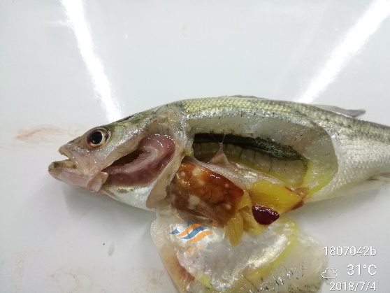 加州鱸苗期的病毒病主要有3種:彈狀病毒病、大口黑鱸虹彩病毒病和傳染性脾腎壞死病毒病。加州鱸彈狀病毒病主要危害小規(guī)格魚苗,癥狀主要表現(xiàn)為“熟身”、“打轉(zhuǎn)”等;大口黑鱸虹彩病毒病可感染各種規(guī)格的加州鱸苗,癥狀較為復(fù)雜,主要表現(xiàn)為腹部發(fā)紅、鰓蓋潰爛、體表點狀潰瘍、肝臟白斑等;這兩種病毒在加州鱸苗期都十分常見,死亡率高達3-5成甚至全塘覆沒。傳染性脾腎壞死病毒病相對少見,但對加州鱸苗致死率更高。
