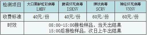我們長期提供彈狀病毒、大口黑鱸虹彩病毒、傳染性脾腎壞死病毒等加州鱸常見病毒的檢測服務(wù),檢測靈敏度高,收費低,出結(jié)果快,歡迎廣大客戶預(yù)約送檢。