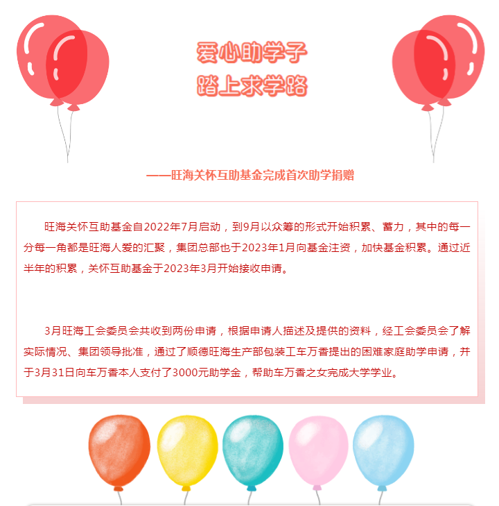 【旺海新聞】旺海關(guān)懷互助基金完成首次助學捐贈