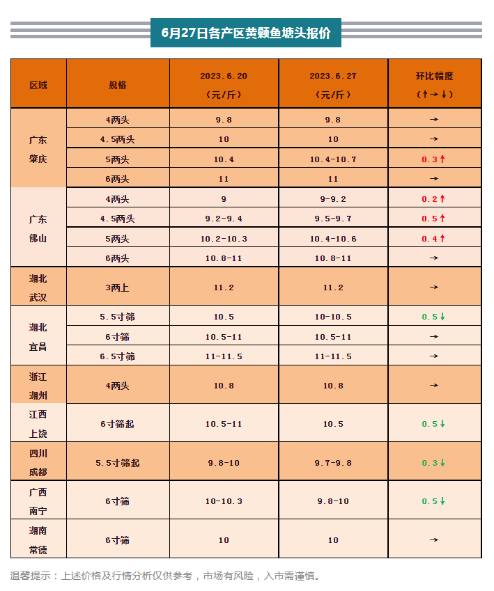 2023年6月下旬全國各地生魚、草魚、黃顙魚行情周報(bào)